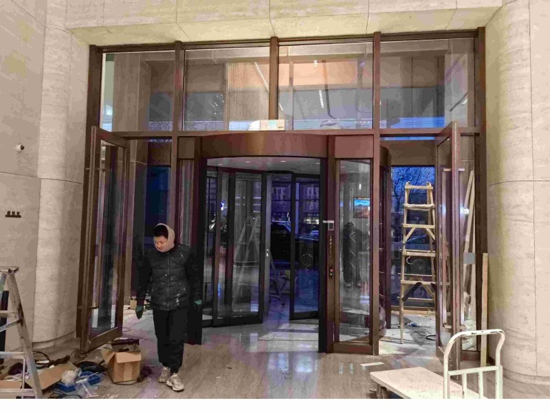 项目概述:此项目为旧门改造项目,原有为平开地弹门,因平开地弹门保温性能差,风大时平开门关不住,整体门头达不到大厦整体美观,因此改造为两翼自动旋转门,改造后不仅提升大厦大堂内的保温效果,并提升了大厦门头的整体档次,改造效果达到预期。